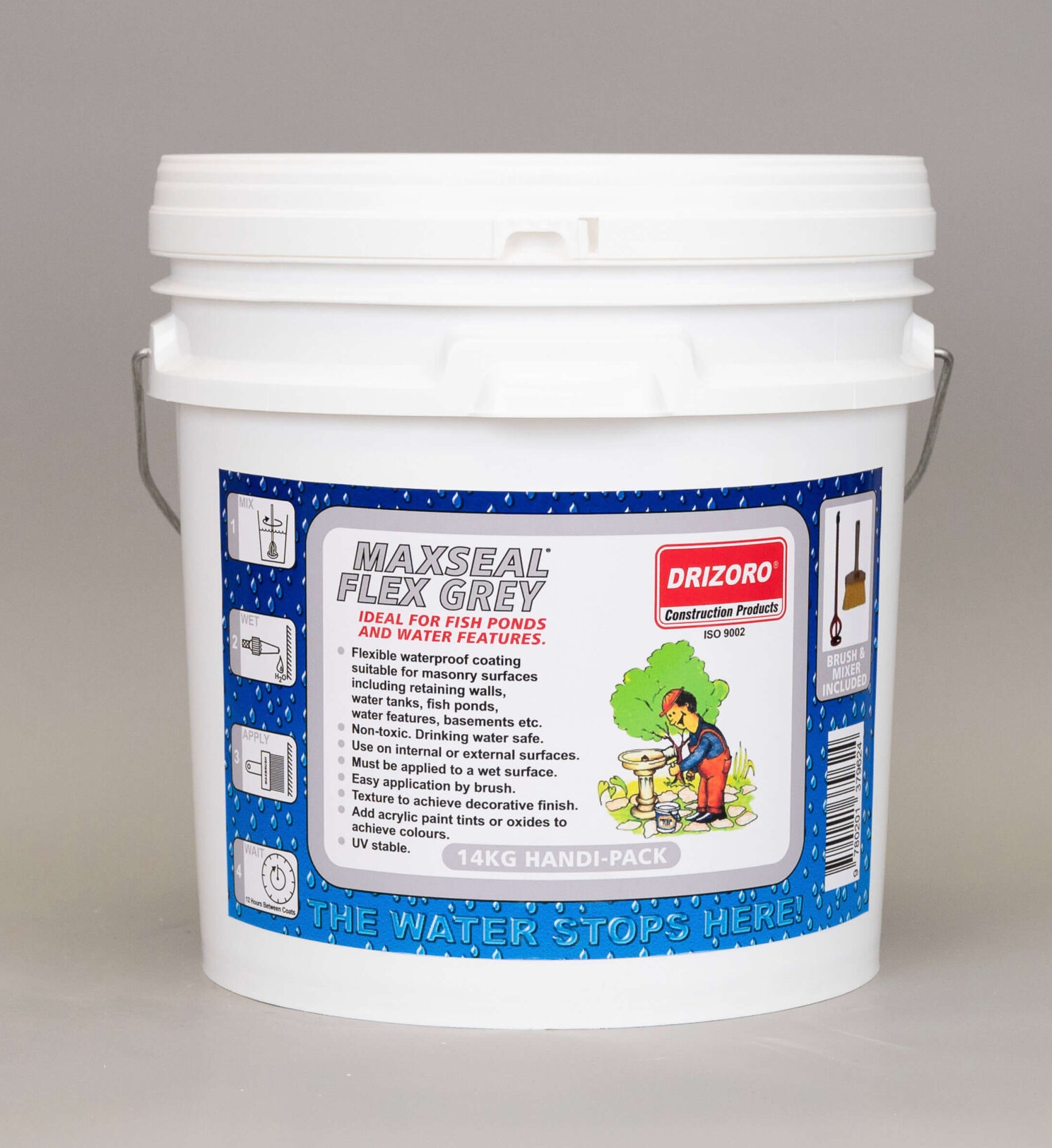 Drizoro Maxseal Flex – flexible waterproofing membrane. Supplied in grey and white colour. And can be tinted. A pigmented version of Maxseal Flex Decor is available in light colours by special request.